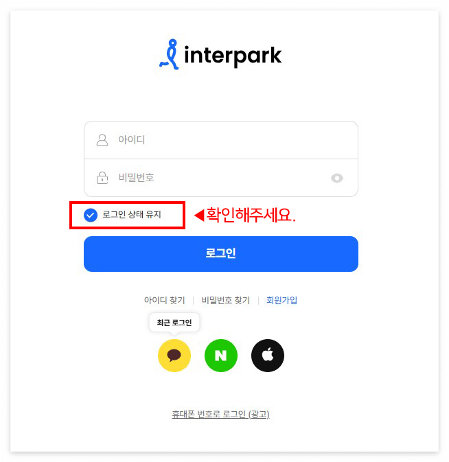 미리 인터파크 티켓 사이트에 접속하셔서 로그인을 미리 해두시는 것이 좋습니다. 아이디랑 비번입력하시고 "로그인 상태 유지" 하시는 것이 좋습니다. 단, 개인사용 컴퓨터에서만 저장하시는 것이 좋습니다. 또한 동일한 예매창을 하나 더 예비로 오픈해 놓으시는 것을 추천드립니다.